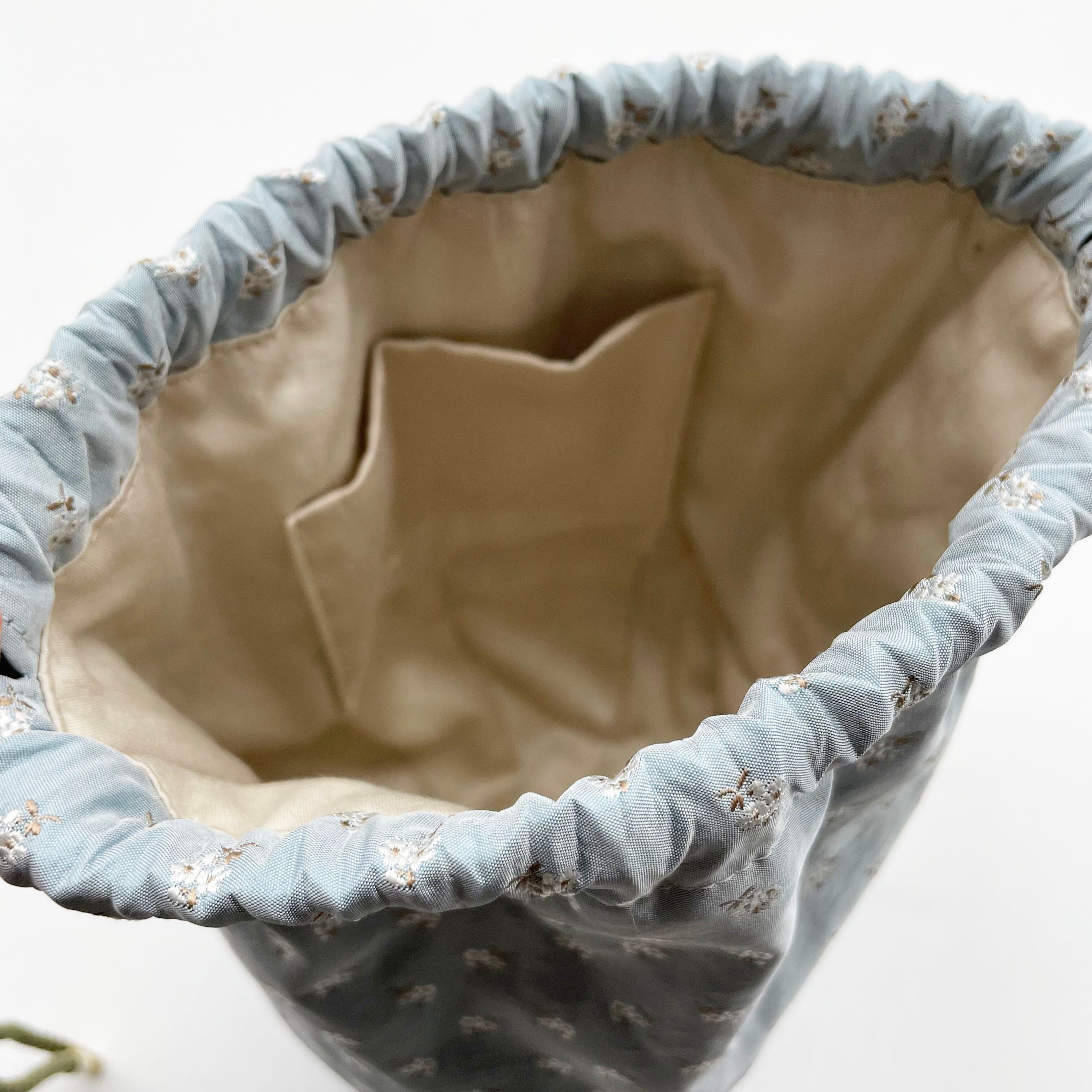 ひもはご自身でお好きな長さに結んで、肩掛けでも手持ちでもご使用できます(斜め掛けは難しいです)