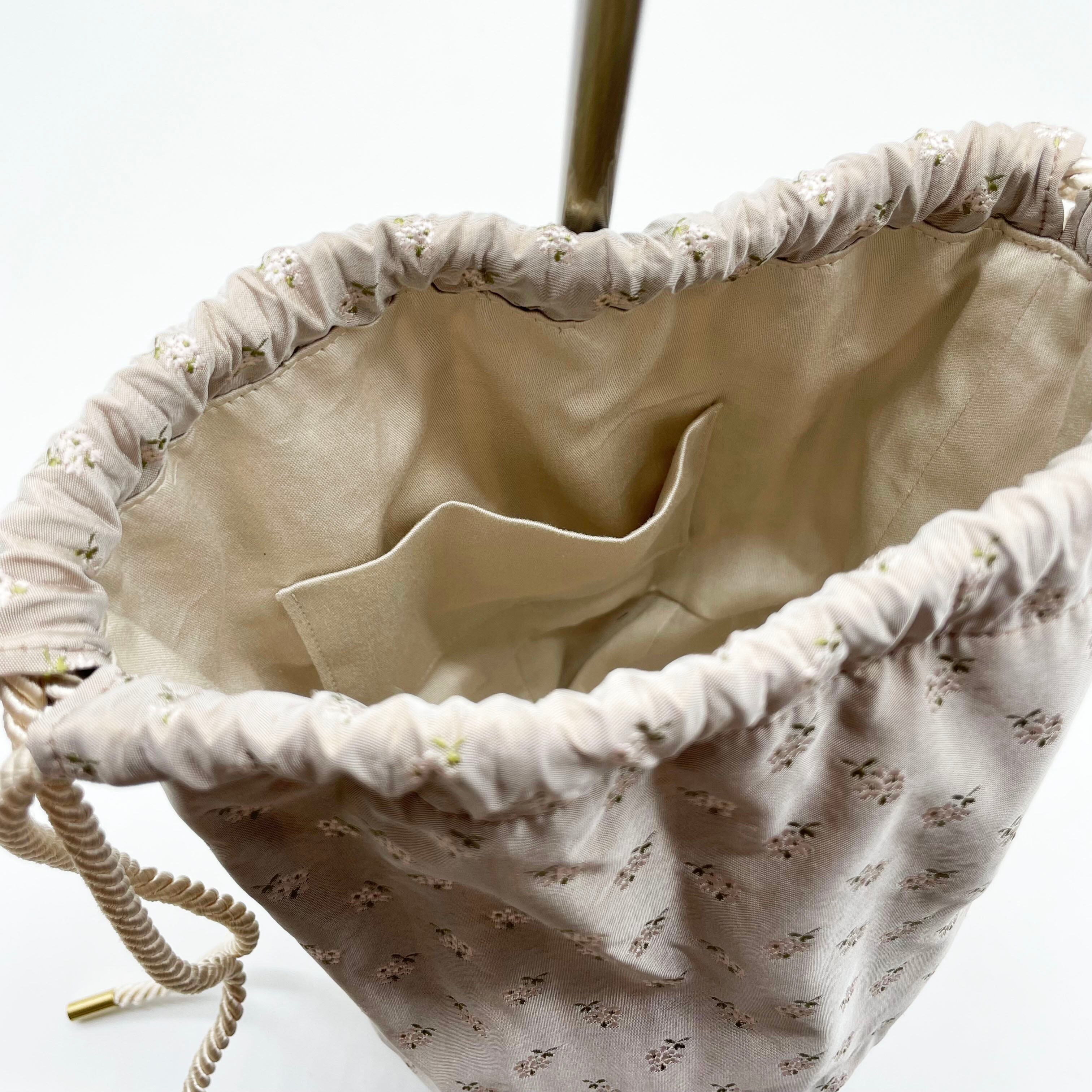 ひもはご自身でお好きな長さに結んで、肩掛けでも手持ちでもご使用できます(斜め掛けは難しいです)