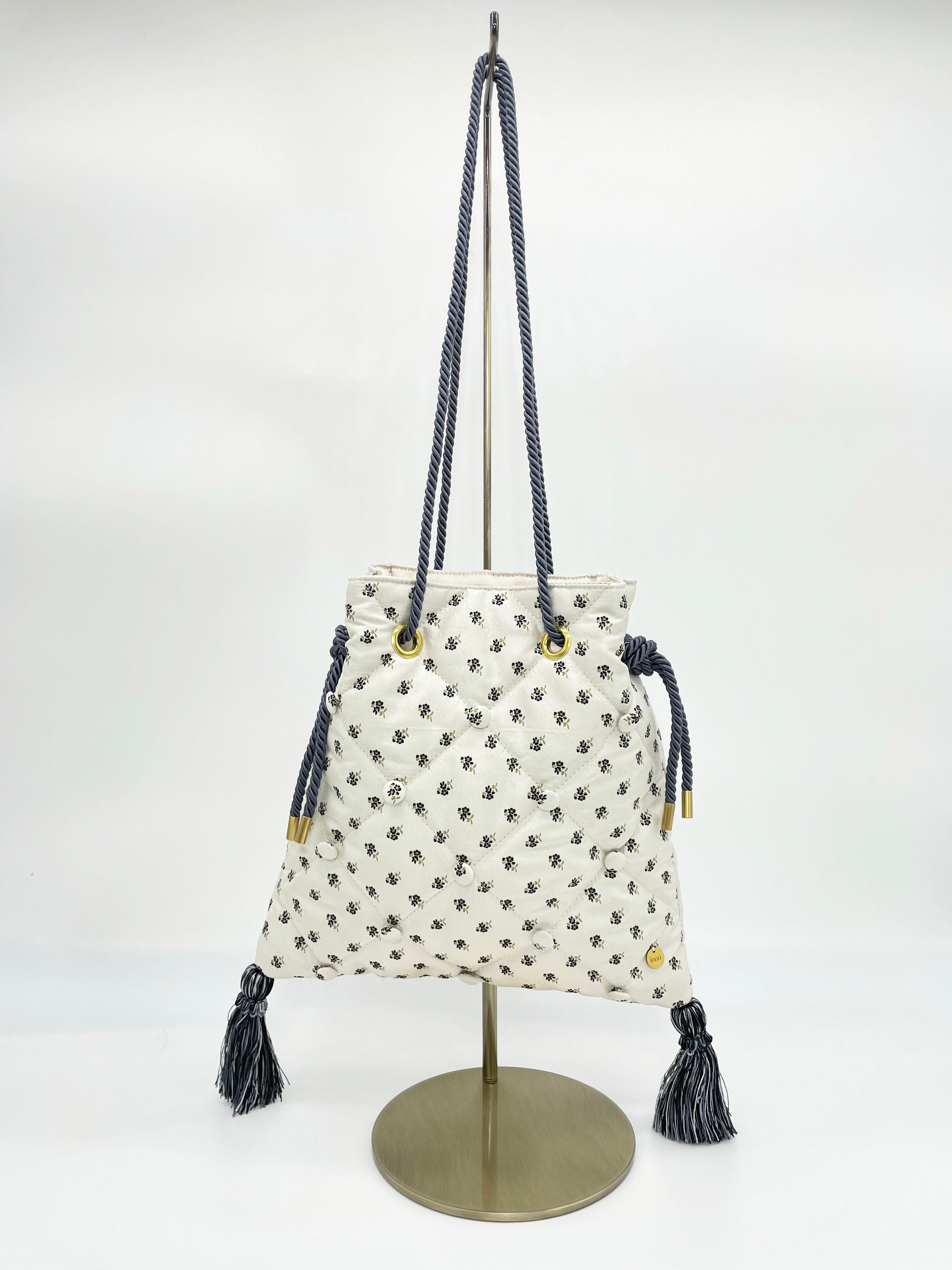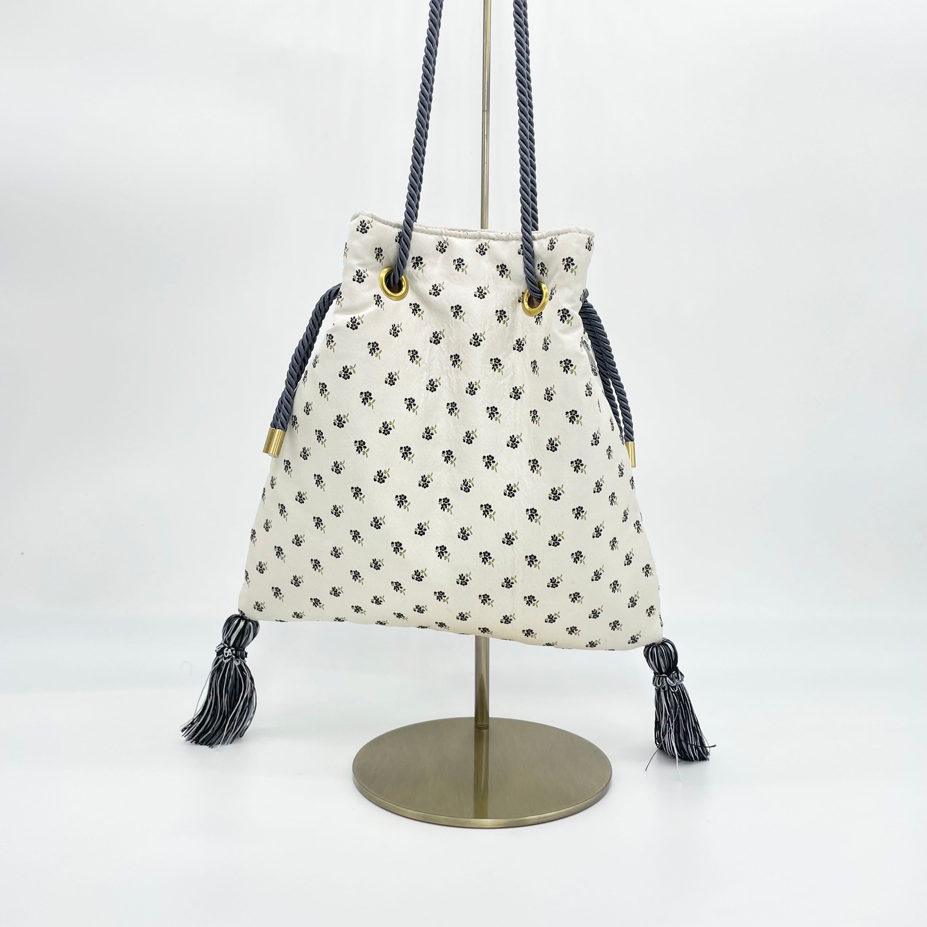 ひもはご自身でお好きな長さに結んで、肩掛けでも手持ちでもご使用できます(斜め掛けは難しいです)ハトメの通し方や引っ張る位置によってバッグ自体のシルエットも変化して楽しめます