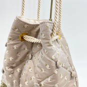 ひもはご自身でお好きな長さに結んで、肩掛けでも手持ちでもご使用できます(斜め掛けは難しいです)ハトメの通し方や引っ張る位置によってバッグ自体のシルエットも変化して楽しめます